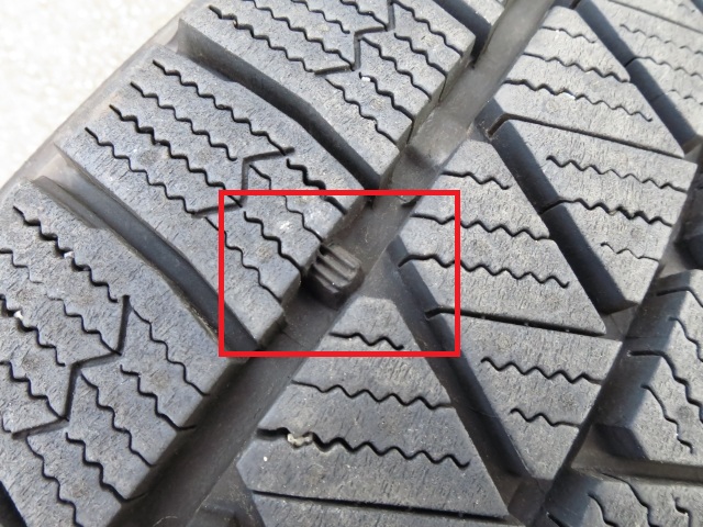 スリップサインはもちろん、プラットホームが露出した状態では、スタッドレスタイヤに溝の深さが足らないため、路面の雪や氷を掴むことができません。溝の深さは残っていても、製造から3~4年を経過するとゴムの硬化が進んでいます。
